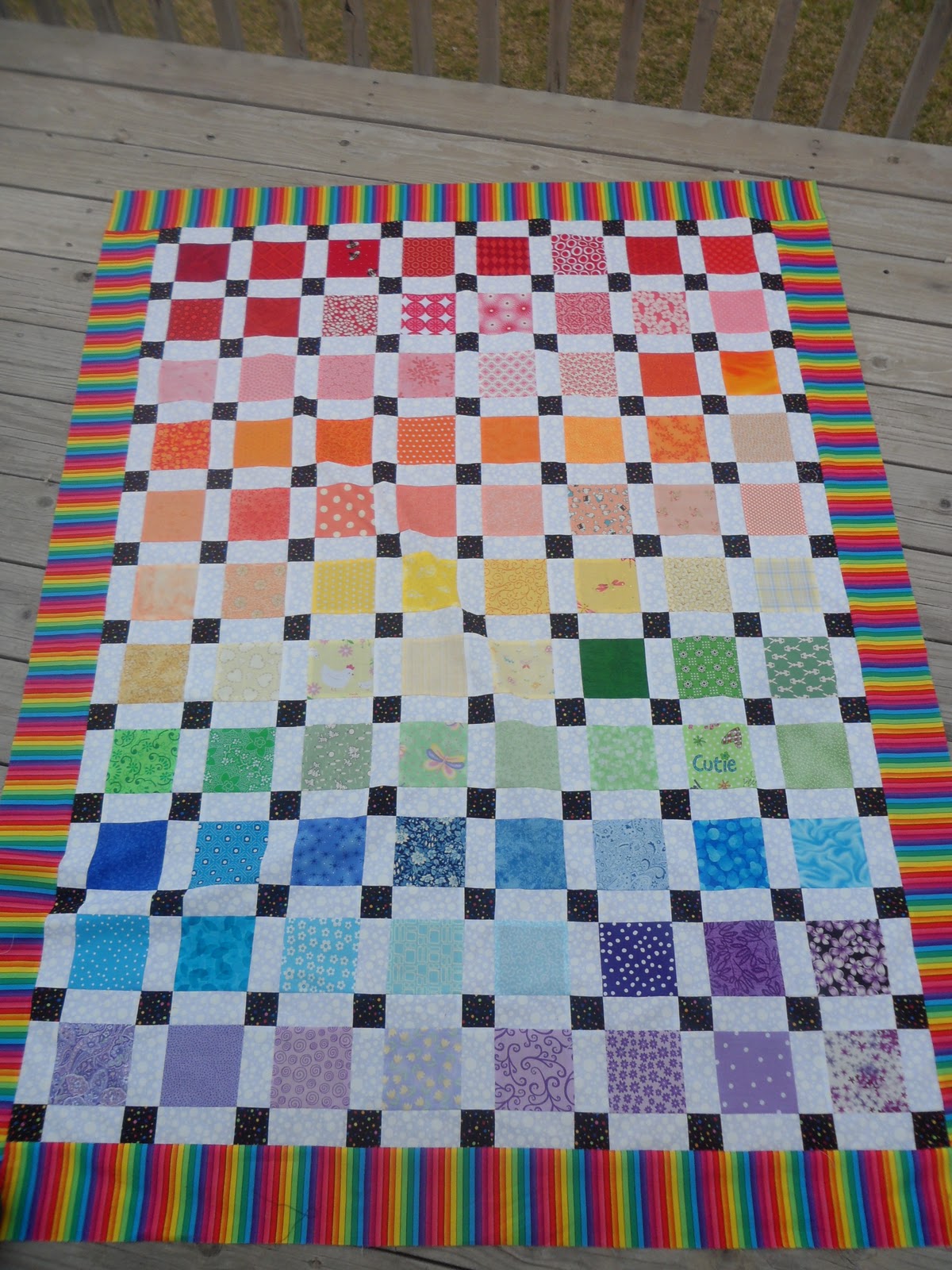 I used this rainbow fabric for the border thought it was perfect, it had all the colors and it was rainbow.